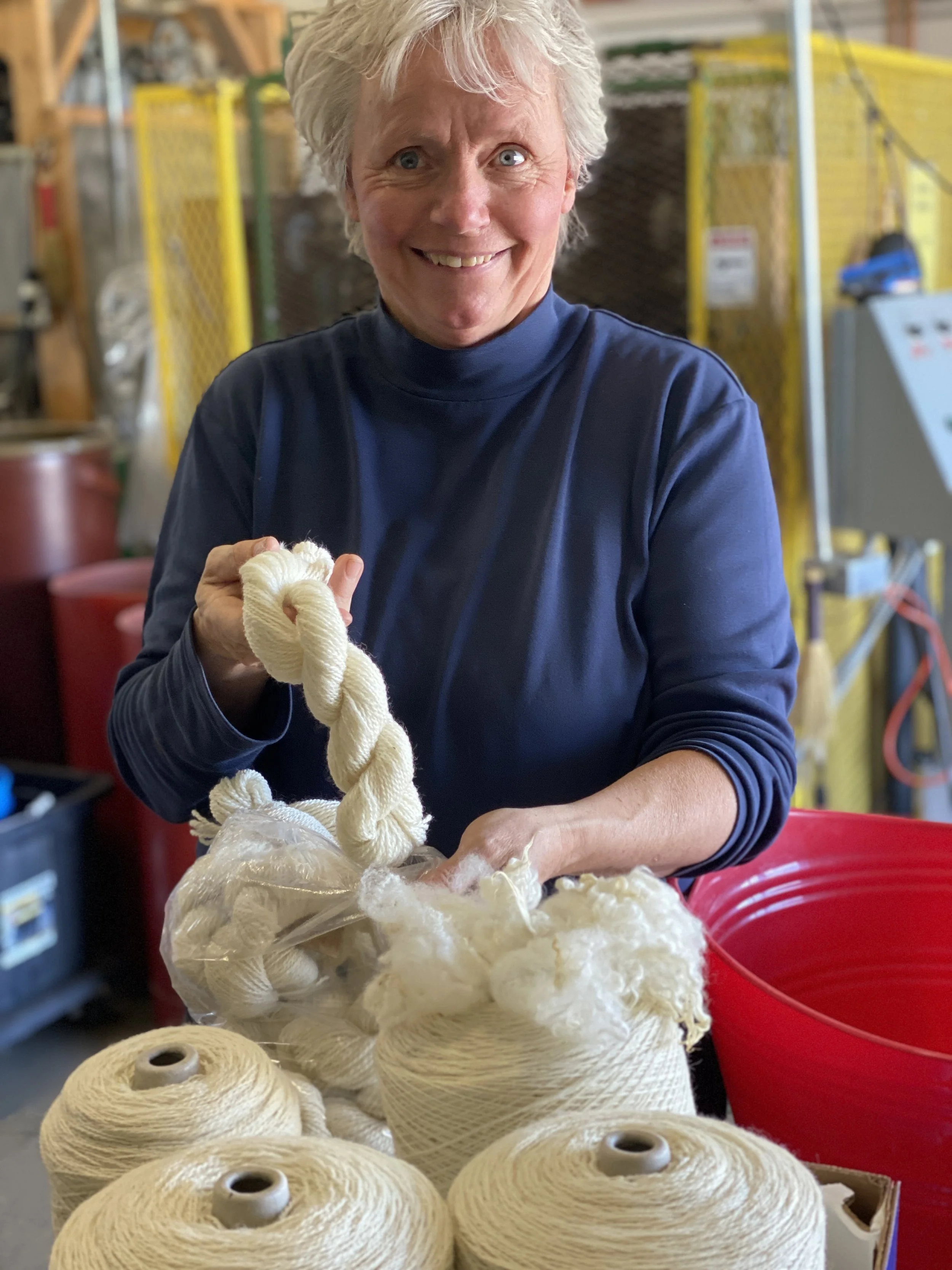 That experience, along with the support, help and experience of her other "mill family members" is just the right combination to prepare our lovely wool just the way we want it.