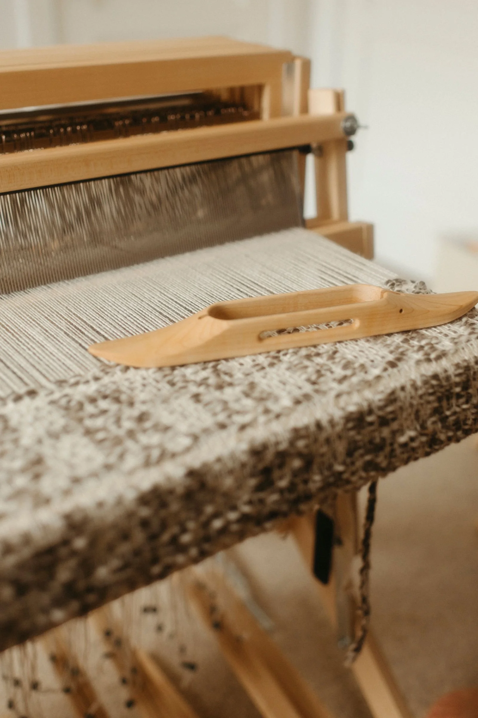 The carded wool is then spun into yarn using small-scale spinning machines. Micro mills take great care in the spinning process to maintain the wool’s natural qualities, texture, and color. During spinning, the fibers are twisted together to create yarn, with the tightness of the twist determining the yarn’s final texture and strength. Our mill operators adjust the spinning to create the exact type of yarn, perfect for hand weaving.
